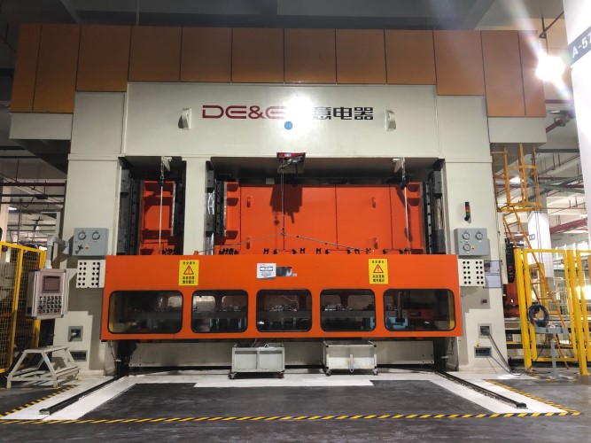多工位液壓機(jī)可視為多臺(tái)液壓機(jī)及拆垛送料系統(tǒng)的集成,即?臺(tái)多工位壓力機(jī)相當(dāng)于一條自動(dòng)化壓力機(jī)生產(chǎn)線,?般由線首拆垛單元、送料機(jī)構(gòu)、壓力機(jī)和線尾出料單元組成;主要用于拉深、沖裁、彎曲等連續(xù)生產(chǎn)工藝,采用獨(dú)立的糾偏控制系統(tǒng),實(shí)現(xiàn)液壓機(jī)滑塊相對(duì)于工作平臺(tái)平行壓制。
